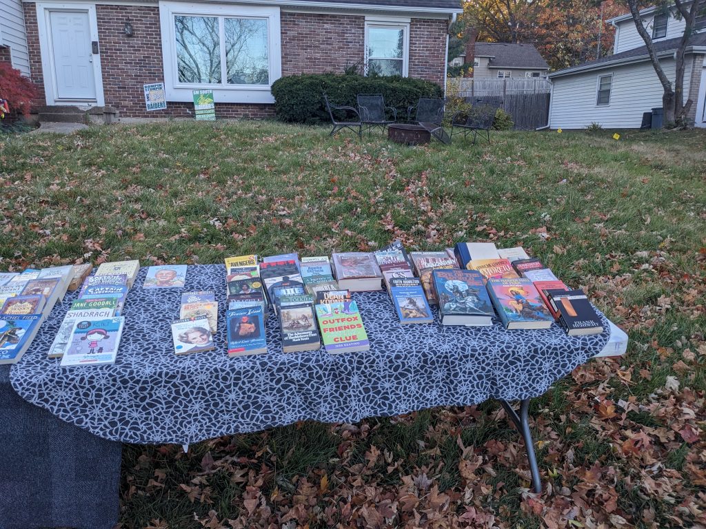 The youngster who took “Mom the Werewolf and Me” was very excited. I missed seeing where “The Best of Dear Abby” went, but my sister was very pleased it was gone at the end of the night.