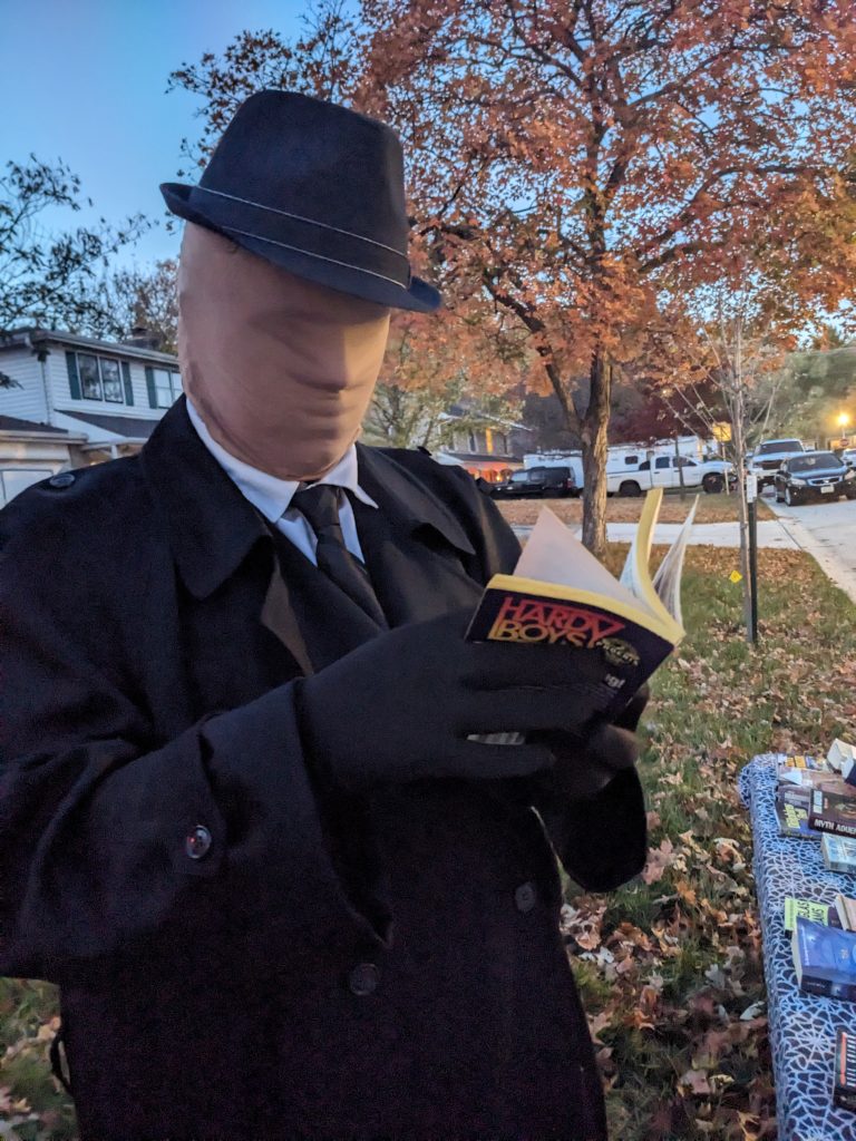 All Hallows Read 2024 is in the books. It was great to see so many people out and we enjoyed discussing books with everyone. It’s always fun to have folks excited to see books they loved as a kid. Apparently the A to Z Mysteries were very popular a few years ago. Many a highschool and college age visitor chatted about them. Cam Jansen was also well loved.